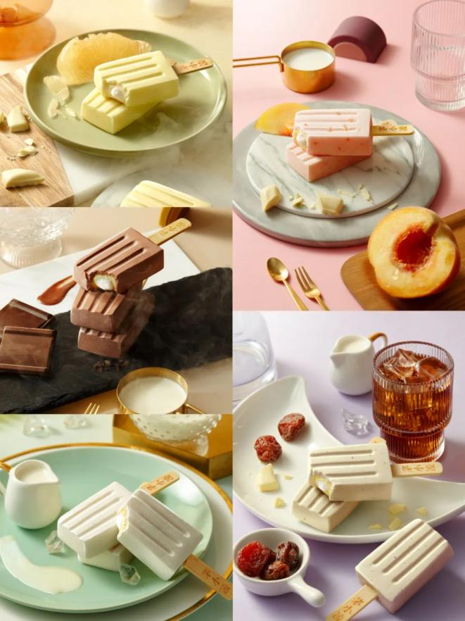 茅台冰淇淋新品“小巧支”口感丰富、层次分明,有牛乳、巧克力、酸梅、蜜桃、青柚5种口味。牛乳口味丝滑浓醇、口口留香;巧克力口味入口柔滑、醇香浓郁;酸梅口味酸甜适中、酒香朦胧;蜜桃口味如蜜甜鲜、直沁心脾;青柚口味甘甜清冽、清香盈口,每一款都能为亲们带来惊喜。