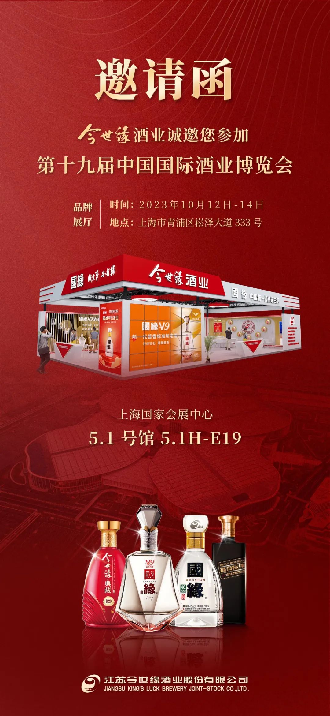 据悉,10月11日,今世缘酒业将亮相第19届中国国际(上海)酒业博览会。10月12-14日,今世缘酒业将亮相深圳市国际会展中心14号展馆(091-092T展位)。当前,秋季糖酒会已在鹏城掀起热潮,今世缘酒业的频频亮相,意在大力推进省外招商步伐,全面发力全国化。同期,今世缘酒业将亮相第六届中国(淮安)国际食品博览会暨金秋经贸洽谈会,国缘、今世缘、高沟三大品牌系列产品精彩展出。