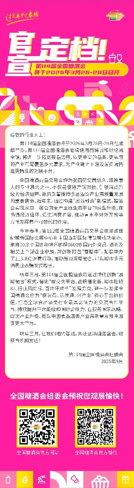 官宣定档!第114届全国糖酒会将于2026年3月26-28日召开