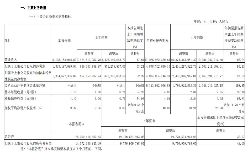 前三季度营收与利润都超过去年全年,经营活动产生的现金流量净额更比上年同期增长198.85%!