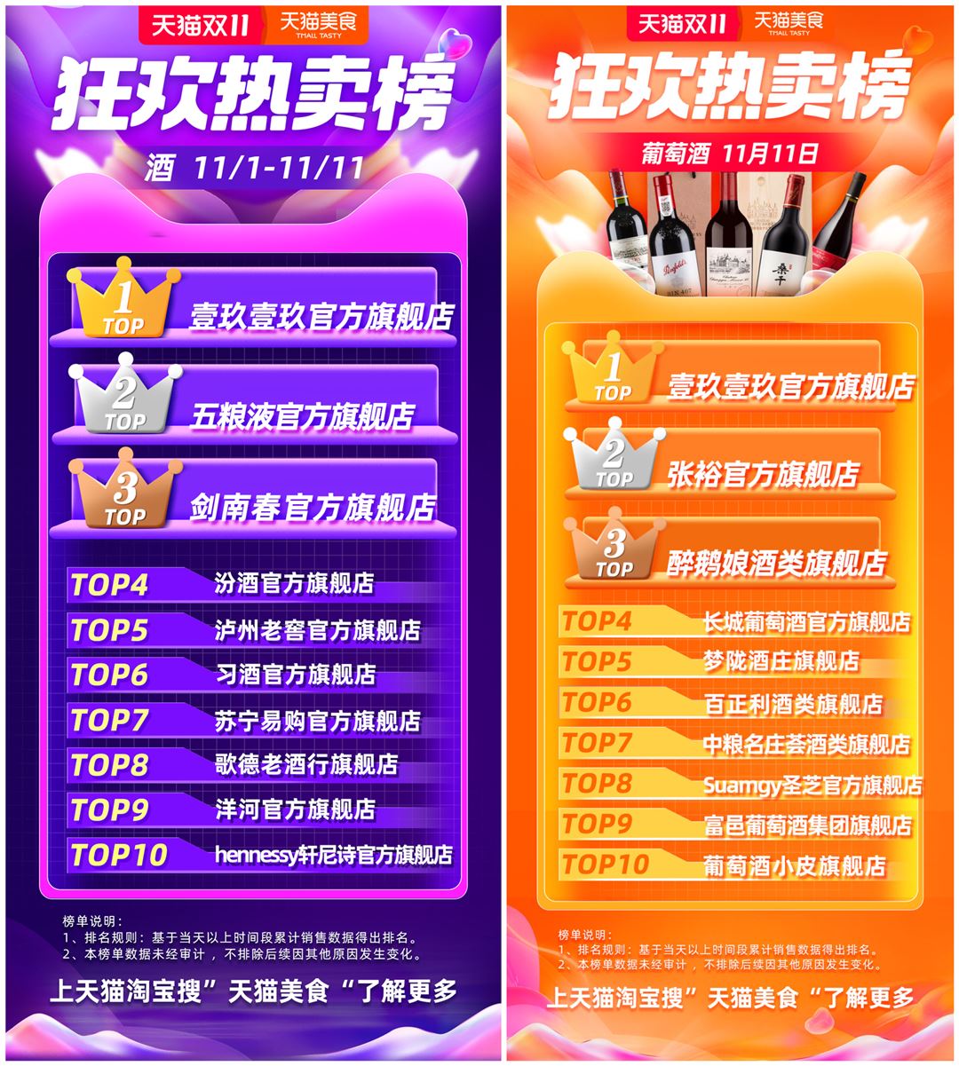 11月11日24点,2021年双十一全球狂欢节落下帷幕,作为主战场的天猫成交额定格在5403亿元,再创新高。 作为酒类新零售的引领者,壹玖壹玖官方旗舰店再次夺冠天猫双十一酒类热销店铺