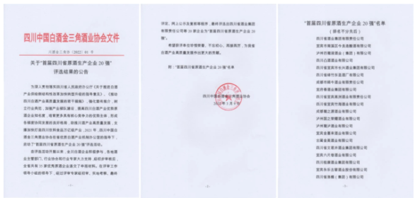 川酒集团位列“首届四川省原酒生产企业20强”评选第一